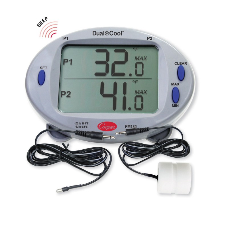 我们拥有多种温度监测设备包括悬挂或粘在冷藏设备内部的小型机械 温度计,以及更复杂的板式温度计。