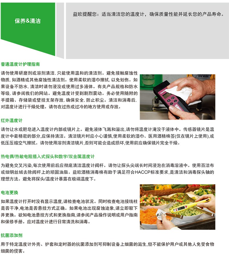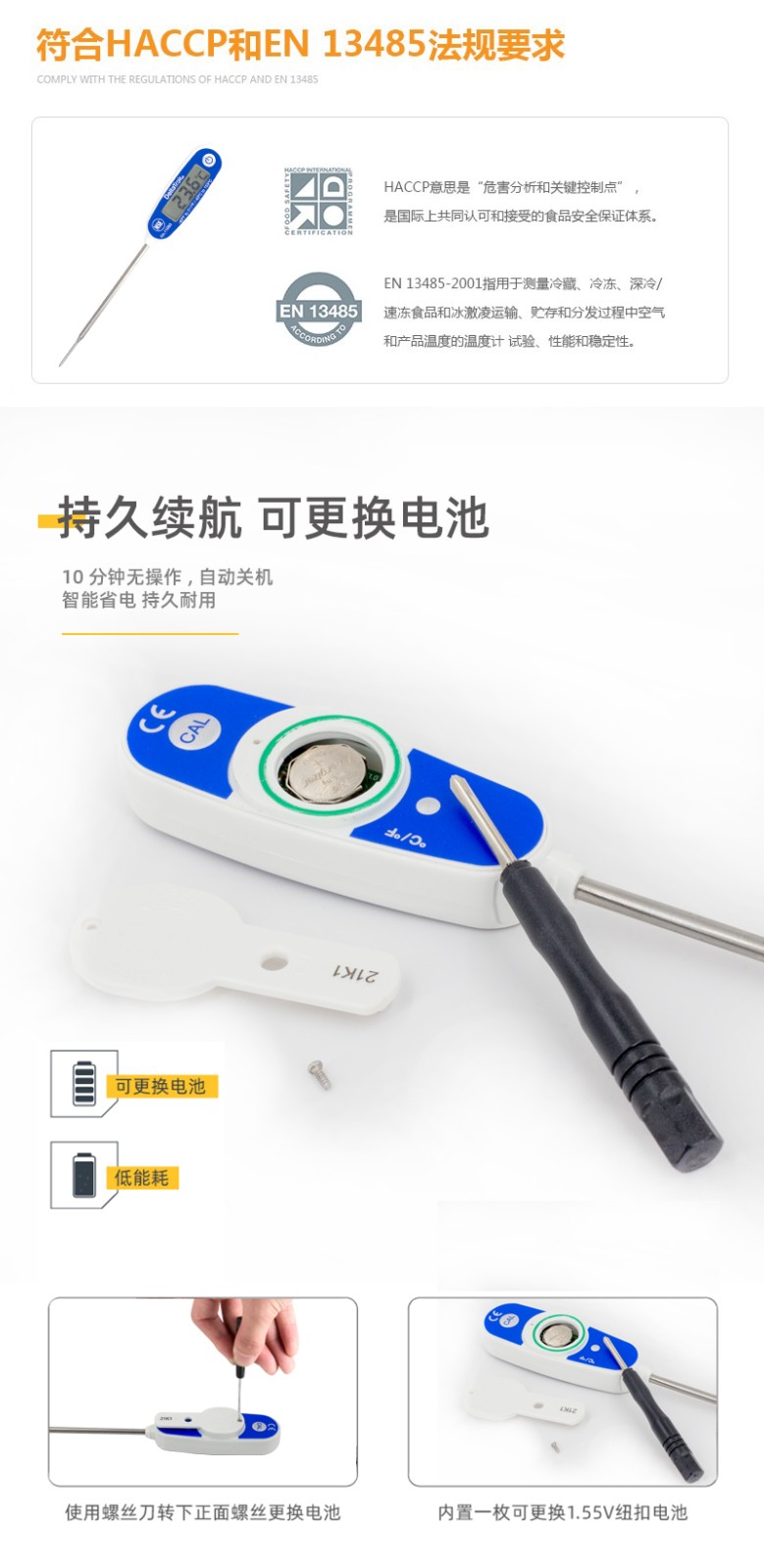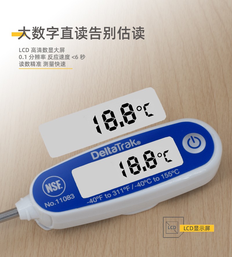 11083 NSF认证的,抗微生物的温度计带有一个尖端收窄探针,可协助维持HACCP食品安全标准, 也适合用在任何食品预配,烹饪,暂时存放, 服务和食品保存的设施或公司, 以及在分销中心,冷藏库和食品加工场所。 它符合美国公共卫生服务食品代码4-203的规定,可用于HACCP 计划的验证和要求。