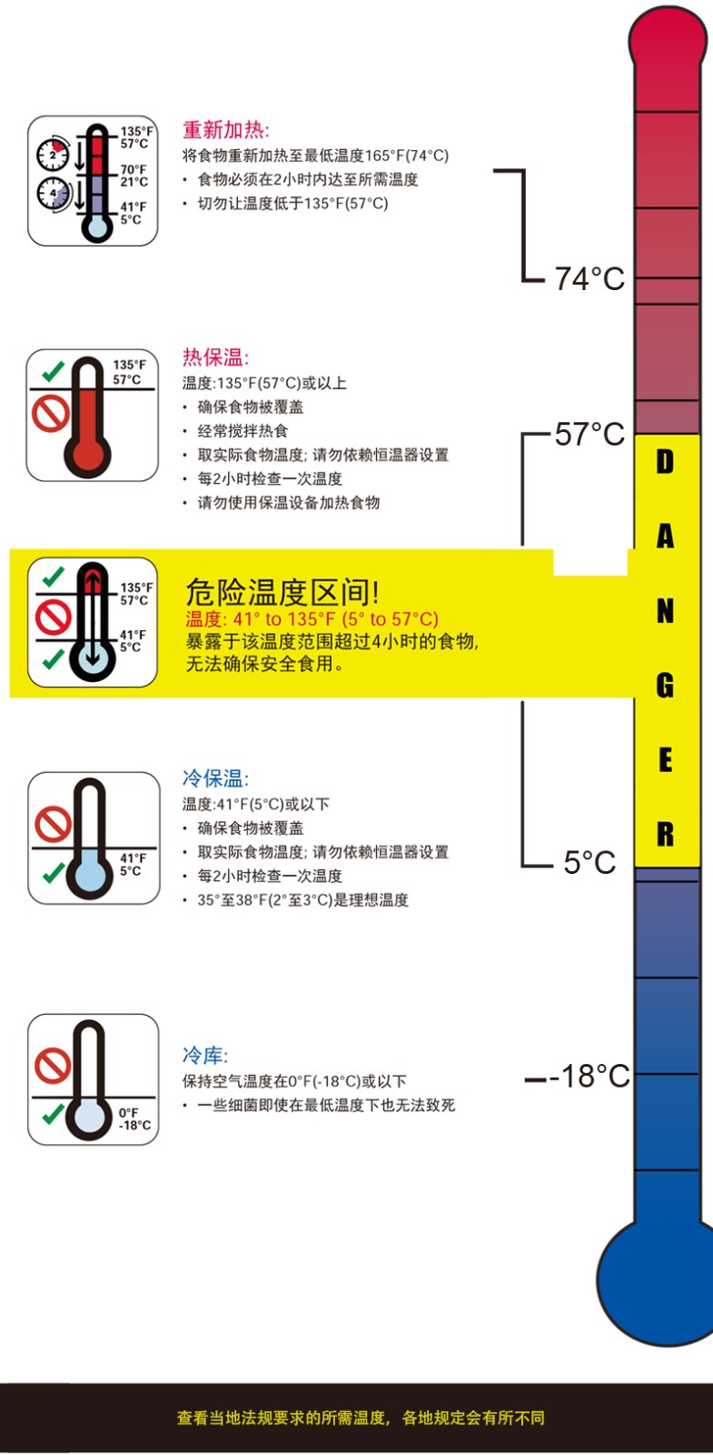 针形尖头探针可测量大块薄片食物温度,例如肉馅饼,鸡块,鱼块, 按照 FDA 食品代码 4-302.12 (B)的规定