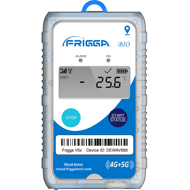 Frigga V5(Li) -(B) 是一款一次性使用的实时温度定位记录仪,可进行有效全程的实时温度监控,并提供实时的位置及轨迹, 是物流和质量部门的关键设备。鼎为物联的Frigga系列产品,正在帮助生命科学客户将其供应链数字化,通过运输、仓储过程中的实时的可视化,进行警报,防止货物丢失,自动化数据整理并提高合规性,以及加快产品研发、销售。