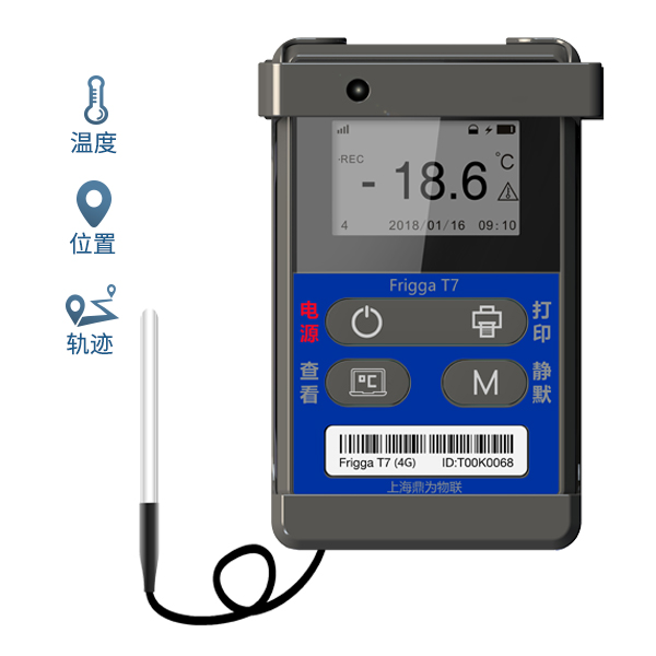 Frigga T7(4G) -(1) 是一款可多次使用的实时温度定位记录仪,可进行有效全程的实时温度监控,并提供实时的位置及轨迹, 是物流和质量部门的关键设备。该设备是可充电的,在其使用期内可反复使用。鼎为物联的Frigga系列产品,正在帮助生命科学 客户将其供应链数字化,通过运输、仓储过程中的实时可视化,和警报防止货物丢失,自动化并提高合规性,以及加快产品发布。