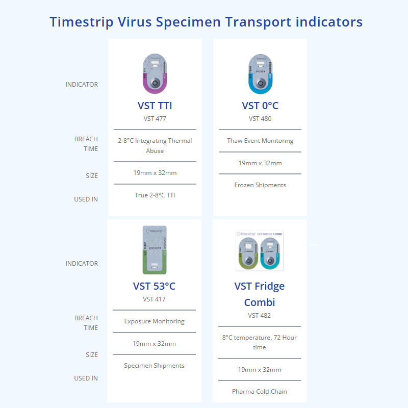 Timestrip VST 为您提供单元级监控。它们可以与标本一起装在盒子里运输。它们是低成本和一次性使用的。无需额外的消毒方案或退货运输。