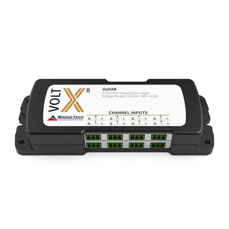 VoltX 系列包括 VoltX4、VoltX8、VoltX12 和 VoltX16 直流电压数据记录器,提供三种电压范围:160 mV、3.2 V 和 32 V。