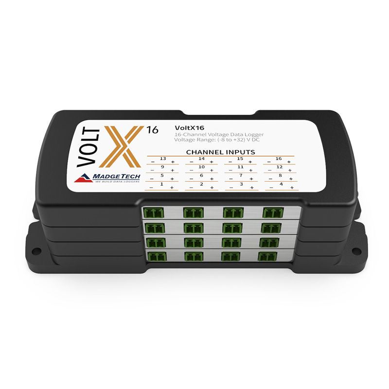 VoltX 系列包括 4、8、12 和 16 通道直流电压数据记录器。包括标准校准证书。