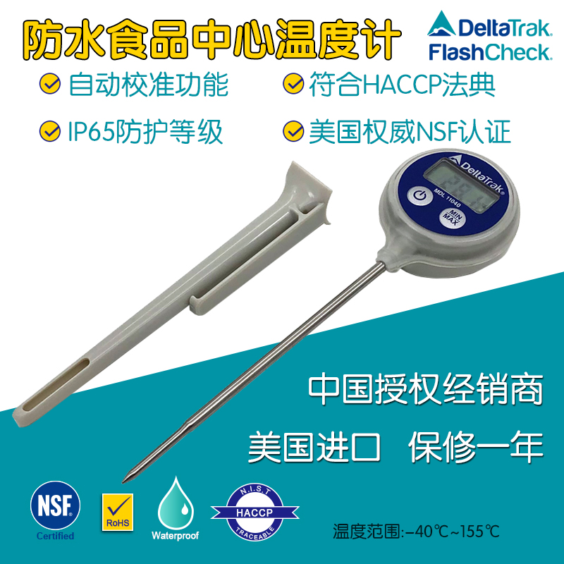 型号11040 是理想的测量工具用于测量烹饪食物的温度、保温和储存。它具有最低/最高温度读数记忆, 连续记录最低和最高温度,配备了NIST溯源校准证书。