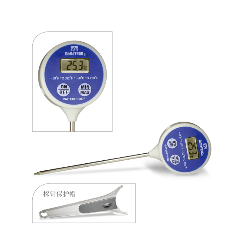 该防水温度计配备NIST溯源校准证书,并有最低/最高温度读数记忆,可以存储最低和最高读数直到温度计重设。采用尖锐探头测试食品内部温度,建议其作为食品安全和质量保证工具,适用于准备食物、烹调、服务和存储食品的任何机构。也是理想的运输中、配送中心接收码头、冷库和加工基地核实产品温度的工具。此温度计符合美国公共卫生服务食品法典4-203,并帮助用户遵守HACCP的要求。型号11049适合商业和工业应用,特别适用于高水分的环境和需要最低/最高温度读数记忆的应用。