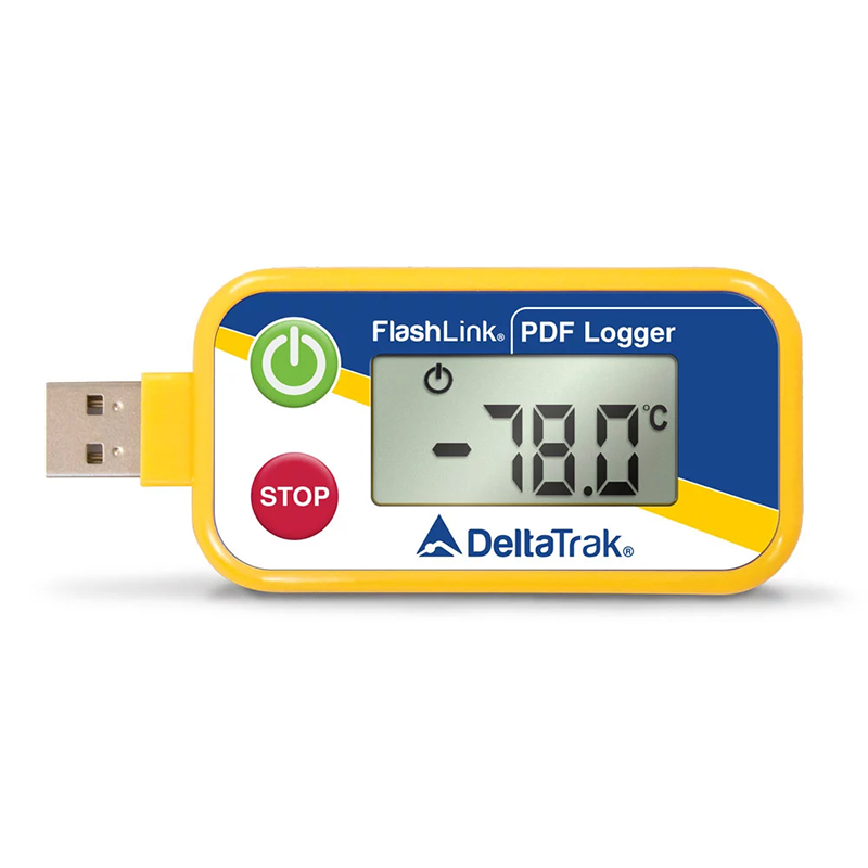 DeltaTrak的FlashLINK USB PDF -80℃ 一次性干冰运输温度记录仪为一理想的冷链管理工具,用于监测在低温运输供应链中必须全程保存于冷冻状况下或是需要与干冰一同运输的的温敏商品。这种一次性使用的数据记录仪配有一个USB接口,具有内载的PDF软件,在货到时可即时下载数据。它并提供PDF和CSV形式的温度历史报告。本记录仪有5,15,45,75天的数据记录周期可供选购,即使操作人无法启动装置,其获得专利的阴影Log®功能,可保证数据永不丢失。