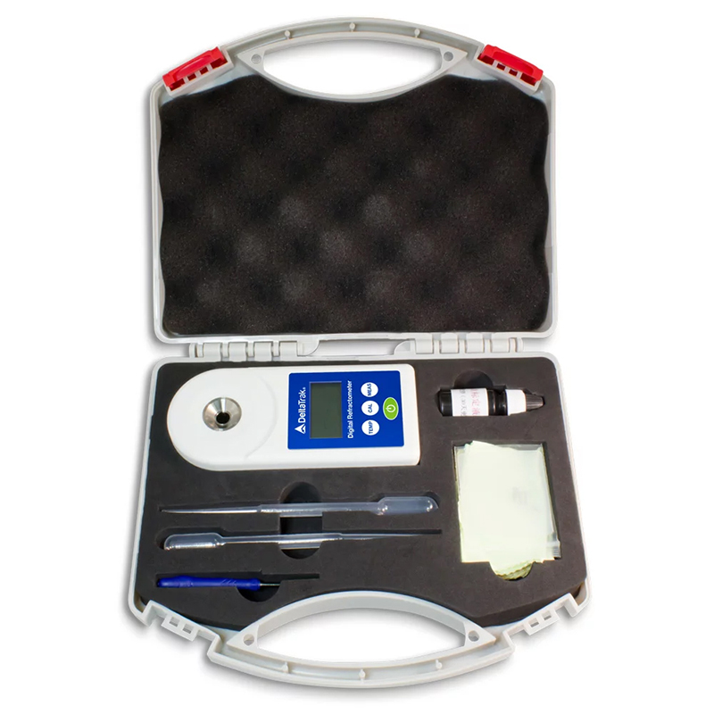 DeltaTrak 数字甜度计是一种测量饮料,加工食品,浓缩剂或水果蔬菜的果汁中糖含量的精密仪器。该仪器会呈现相关的甜度指数,主要的测量单位是溶解糖在水中溶解的百分比。 该设备可用于验证果实成熟度和许多食品和饮料的糖的浓度。