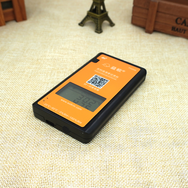 屏幕显示信号强度、电量、温度、湿度、蓝牙、系统时间、记录数、报警、采集时间等
