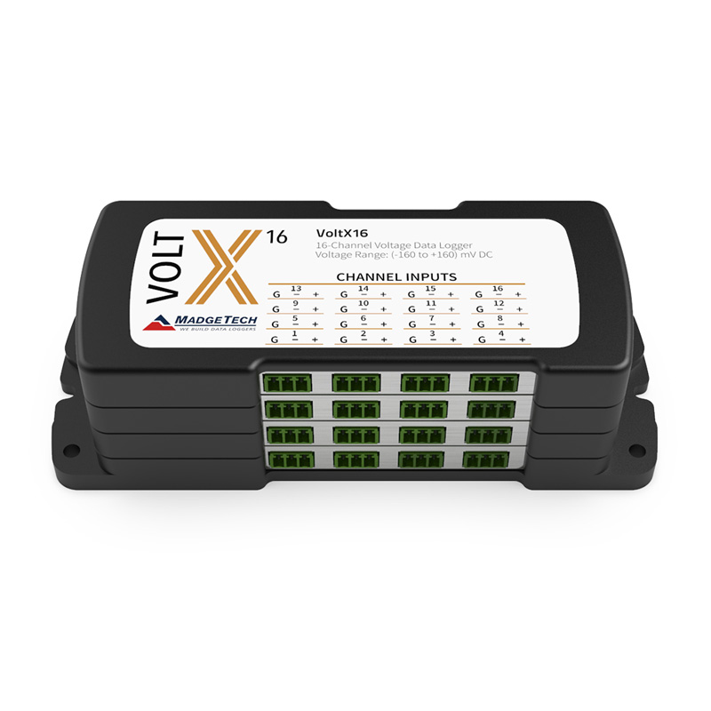 VoltX 系列包括 VoltX4、VoltX8、VoltX12 和 VoltX16 直流电压数据记录器,提供三种电压范围:160 mV、3.2 V 和 32 V。