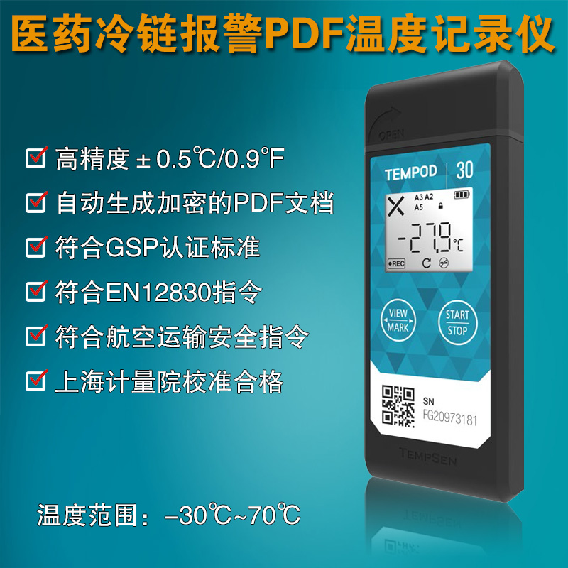 自动生成内嵌原始数据的加密 PDF 报告,而无需安装任何软件。PDF 中内嵌的原始数据可直接导入TempCentre 软件和 TempSen 冷链云作进一步数据分析,且支持第三方系统解析。