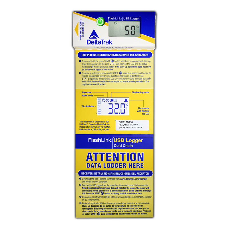 该FlashLINK冷链出口USB记录仪专门满足果蔬运输客户的需求:设定5℃的高温上限和0.5℃的低温下限报警。采用USB直接连接到PC,而不需特殊的阅读器或适配器,任何人都可以随时随地轻松获取数据。FlashPDF软件是免费的,从DeltaTrak网站下载,数据报告保存为PDF格式,以便电子邮件发送和存档保证记录的可追踪性。未来的产品改进将包括开放对供应商和接收方访问ColdTrak数据中心,DeltaTrak的云服务数据的能力,让客户全天候能看见度温度条件。这是我们FlashLINK全球联通项目的特色产品。